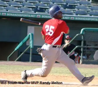 Mid-South got to the title game via a 3-2 round-robin record and playoff wins over the DC Express (5-0) and Long Island Yankees (8-6). Billy Hellums was the defensive hero in the semifinal for the Warriors. With two out and the bases full of Yankees late in the game, Hellums made a diving stop and flip to second base for an inning-ending force out saving two ru