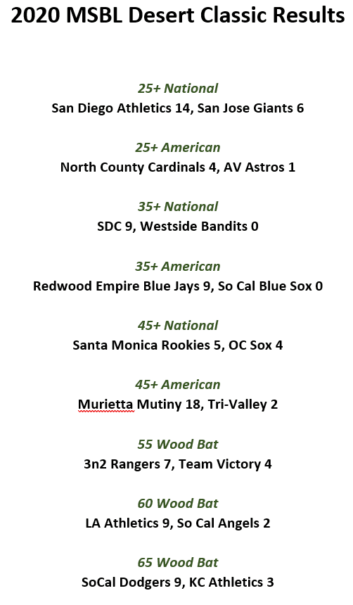 2020 MSBL Desert Classic Champions Crowned By Men's Senior Baseball League | January 22, 2020 Posted in Featured Stories