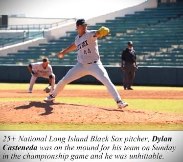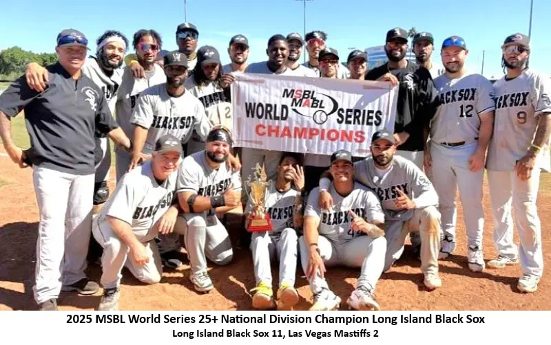 The Long Island Black Sox captured the 2025 National Division 25+ championship with a dominating 11 to 2 victory against the Las Vegas Mastiffs. Anderson De Leon pitched seven strong innings, giving up two runs in the fifth inning. Dylan Castaneda came in the eighth inning and pitched two scoreless innings, striking out the side in the ninth inning.