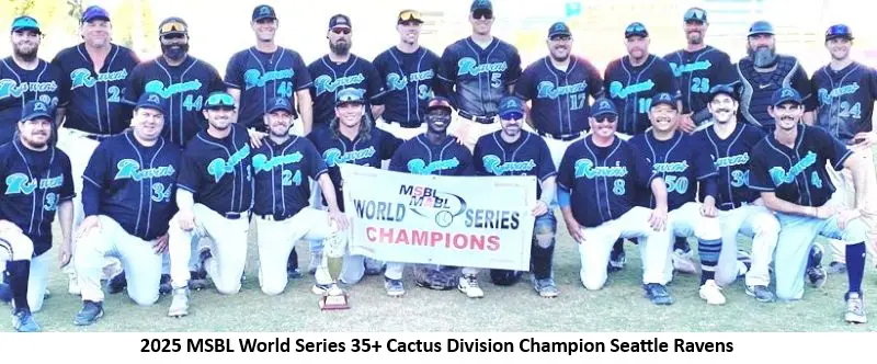 The Ravens earned their first-ever MSBL World Series championship after enduring well over a decade of proverbial blood, sweat, and tears. The Ravens roster included some of the best players from some of the top teams across the most competitive divisions of the Puget Sound Senior Baseball League (PSSBL).