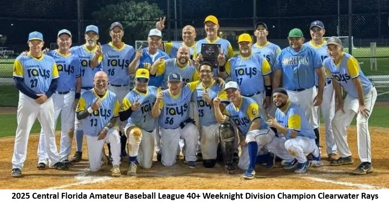 2025 Clearwater Rays ‘Repeat’ as Champs in 40+ Weeknight Division of Central Florida Amateur Baseball League