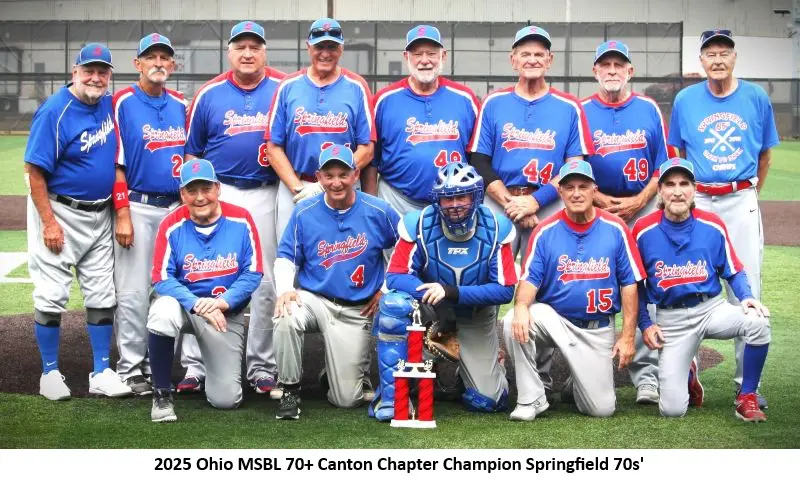 Competing in the Canton 70+ Chapter of the Ohio Men’s Senior Baseball League, Springfield rallied from a regular season-ending 3-game tailspin to win the 2025 postseason championship.