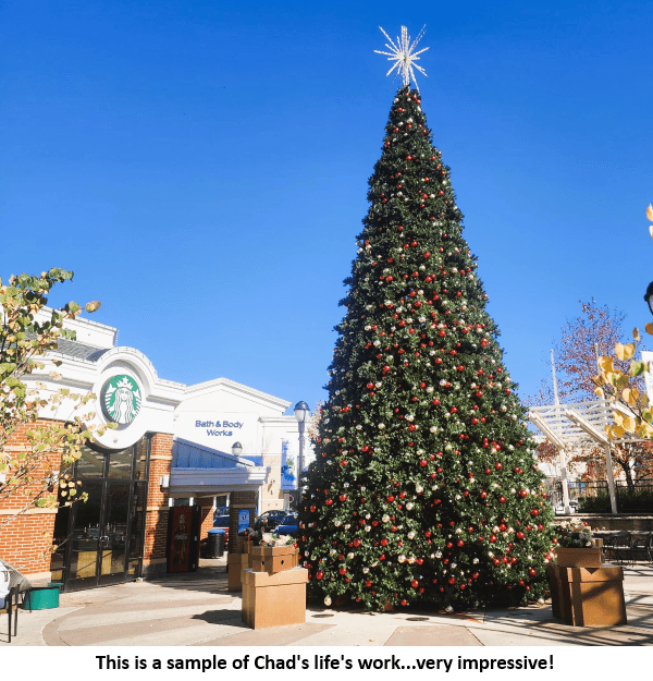 “Christmas decorating is my main income,” said Chad. “I decorate colleges, towns, trees for the city, and over 30 residential houses. Currently, I service over 100 accounts, and I have basically one month to do it.