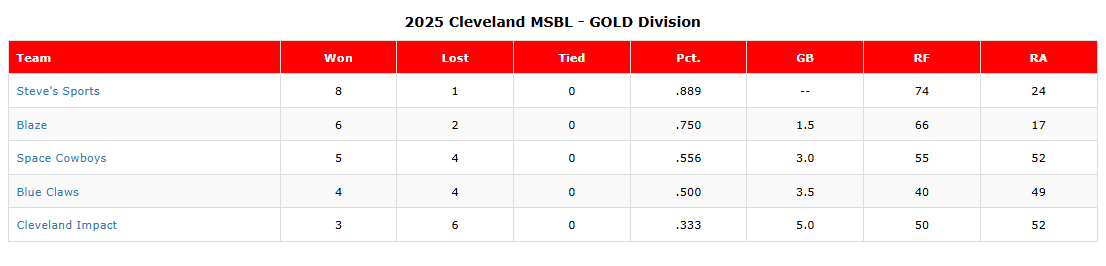Steve’s Sports is currently 8-1 on the 2025 season as they are trying to repeat as Cleveland MSBL Champions!