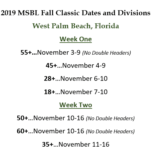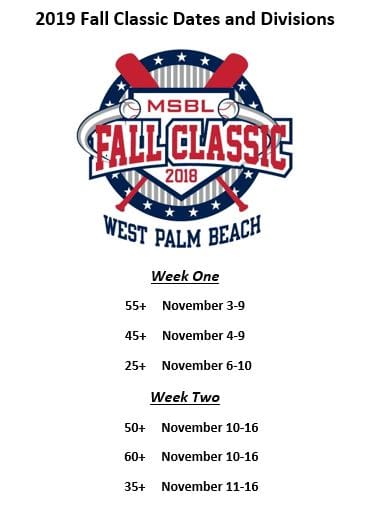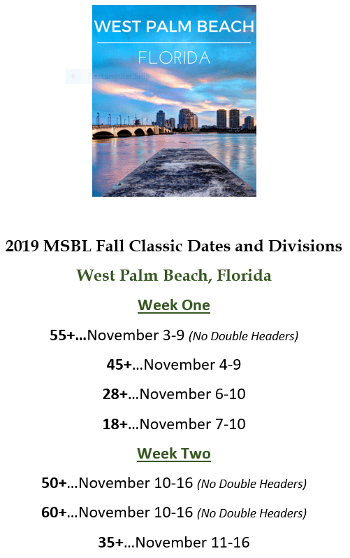 Delray Nationals 12, Columbus Pirates 6 Submitted by Ryan Snyder, manager The Delray Nationals capped off a dominant weekend by winning the MSBL Fall Classic 28+ Division for the third straight…