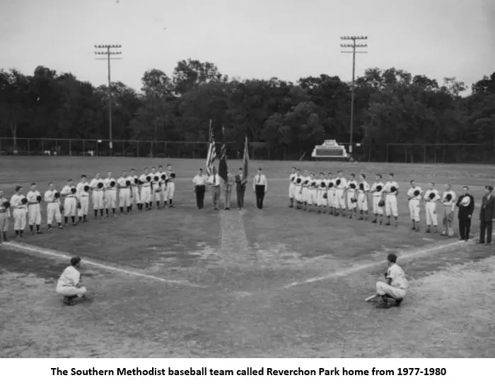 Also, the Southern Methodist University baseball team played at the ballpark from 1977 to 1980, before the baseball program disbanded after the 1980 season.