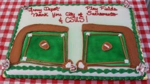(Photos by Jane Burkitt) The Army Depot Park Grand Opening and Thank you Celebration was a success and the league showed its appreciation. The Sacramento Vice Mayor Eric Guerra and his support crew was there. He spoke of the history and growth of the Sacramento Men’s Senior Baseball League and how important the league is to the community and how it has earned the new home. The Sacramento State Director of this 4-year project, Jim Reinhart, also spoke.