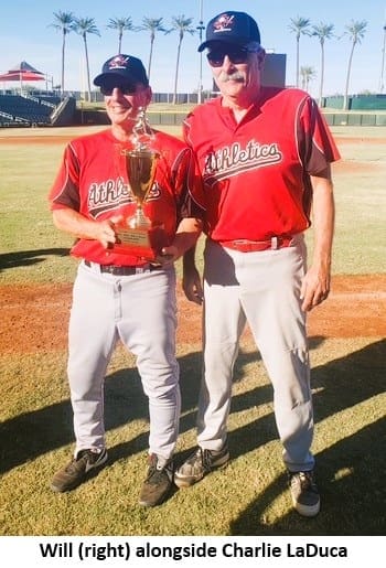 “I’ve been to the MSBL World Series in Arizona maybe 12 or 15 times, and also to Florida. I won a ring in 2021 as part of Bob Sherwin’s LA Athletics, along with MSBL World Series Hall of Famer Charlie LaDuca, from Chautauqua, New York. I’ve been playing in Arizona off and on for 35 years.”